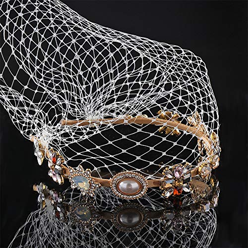 Anglacesmade - Cerchietto per capelli da sposa in stile barocco con perline di cristallo e velo per uccelli in stile vintage anni '20, motivo floreale e strass, per donne e ragazze