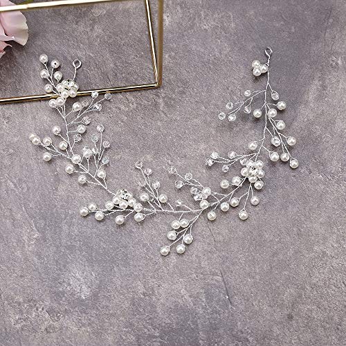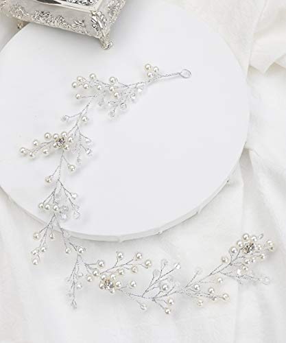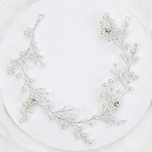 Anglacesmade - Cerchietto da sposa con perle e strass, accessorio per capelli da sposa con cristalli, accessorio per damigella d'onore, per donne e ragazze (argento)
