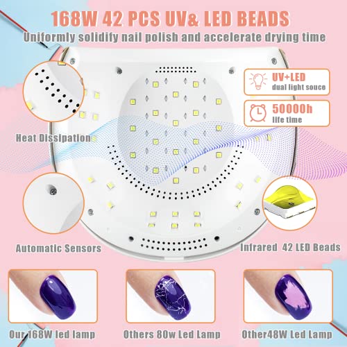 ❤【Lampada per unghie ad alta potenza】:La nostra lampada per unghie ha un'elevata potenza di 168 watt. Pertanto, lo smalto per unghie può essere polimerizzato rapidamente e risparmiare tempo di attesa.