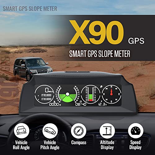 X90 Auto GPS Angolo digitale Orecchino al metro, inclinometro digitale MPH KM / H, voltaggio con schermo LCD HD Schermo compatibile con auto da 12 V fuori strada
