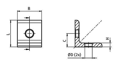 Angolo Angolo Interno Alluminio angolo di 90 ° 45 X 45 X 41 mm in alluminio anodizzato