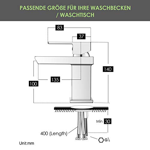 Imballaggio originale. Materiale di fissaggio & 2 X 40 cm tubi di collegamento flessibili, molto leggero per montaggio, anche per i profani;