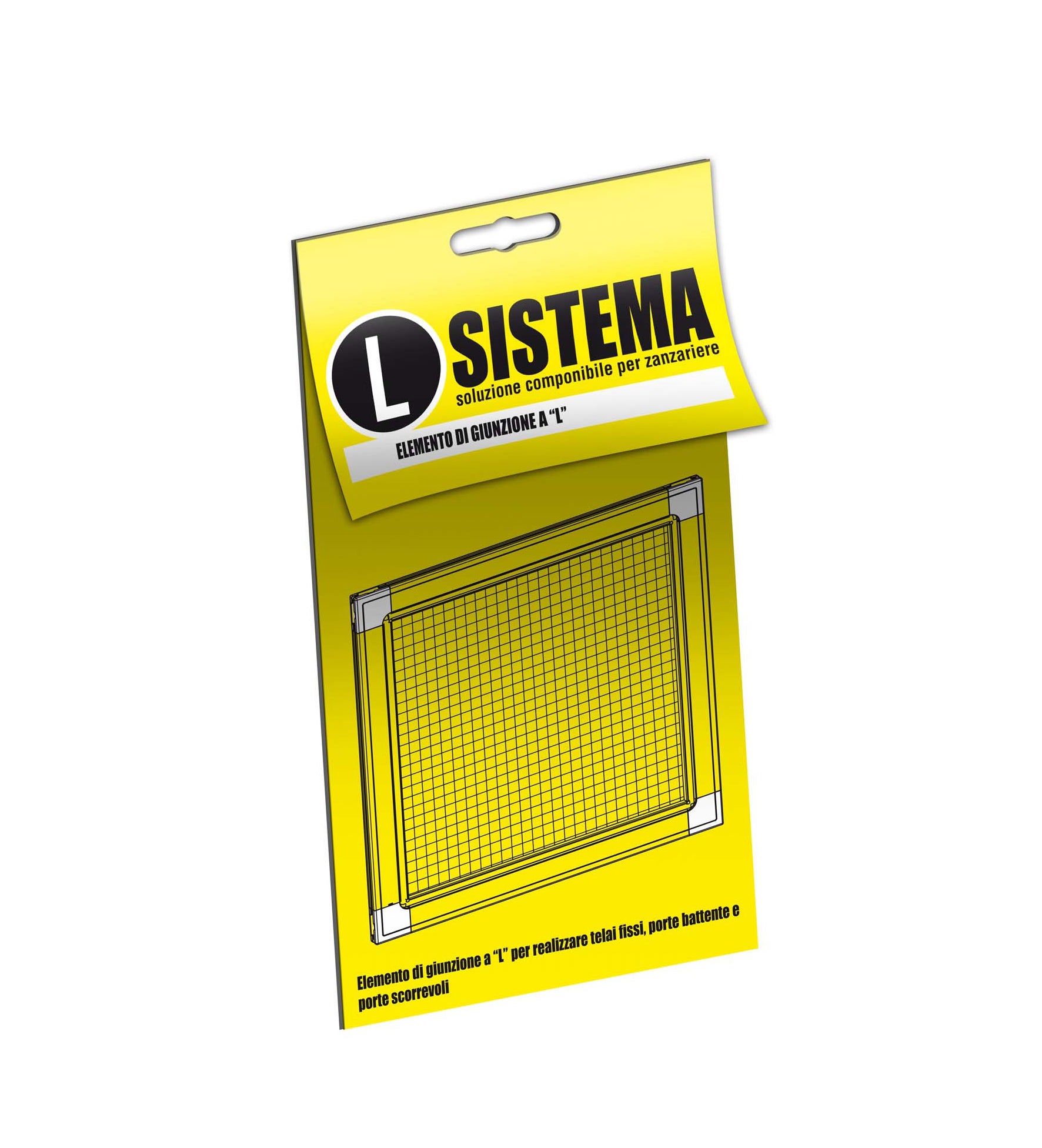 Componibile elemento di giunzione a "L". Adattabile a tutte le forme di foro finestra. Soluzione modulare e componibile per realizzare tutte le tipologie di zanzariere a telaio fisso