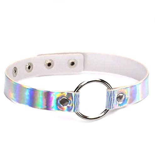 Angoter Olografico Girocollo Punk Festival Indossare Gioielli Iridescente Rosa olografo '90 Choker Grunge Rave Party Festival Colore Casuale