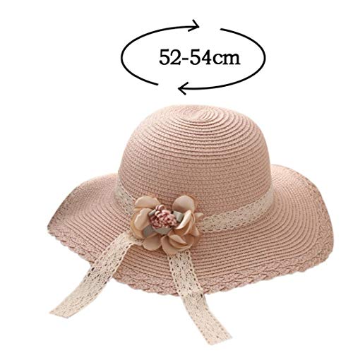 Angoter 1pc Ragazze Bordo Largo Cappello di Paglia con Il Fiore del Merletto della Decorazione dei Bambini Cappelli per Proteggersi dal Sole