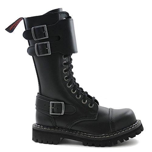 Angry Itch 14 Buchi Stivali Militari Anfibi in Pelle Color Nero copertura frontale punta di ferro punk (40)
