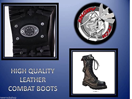 Angry Itch 14 Buchi Stivali Militari Anfibi in Pelle Color Nero punta di ferro Fibbia punk (38)