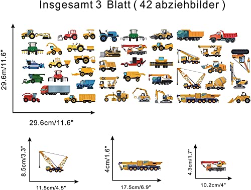 ANHUIB 42 Pezzi Adesive da Parete Fluorescenti per Camera Bambini,Adesivi Murali Veicoli da Costruzione Luminosi,Sticker da Muro della Stanza del Ragazzo,Adesivi da Parete per Asilo Nido Decorazioni