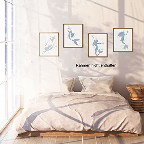 Contenuto e dimensioni dei poster artistici su tela: sagoma di sirena ad acquerello in 9 stampe d'arte con movimenti aggraziati. Nessuna cornice inclusa - 20 cm x 25 cm (8"x10") Set di 9 poster artistici.