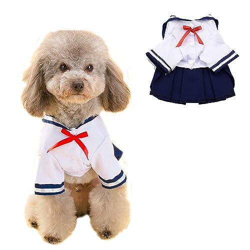 ANIAC Pet Navy Captain Suit Sailor Costume Studente Uniforme con Gonna Rosso Bow-Knot Carino Caldo Vestiti per Gatti e Cani, Small