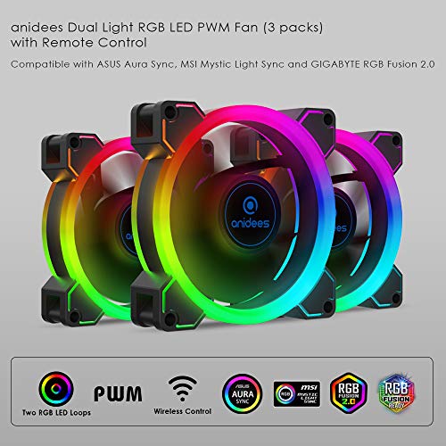Anidees AI Aureola Duo 80mm 3pcs RGB PWM LED a Doppia Luce Loop indirizzabile con Telecomando (AI-AR-DUO8)...