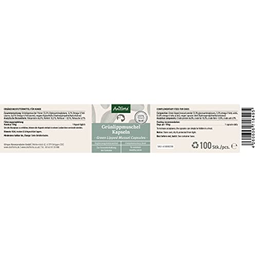 AniForte Capsule di cozze dalle Labbra Verdi per Cani 100 Pezzi - compresse Naturali per sostenere Le articolazioni, in qualità di Grasso Pieno 10,2%, Glycosaminoglycans 3,3%