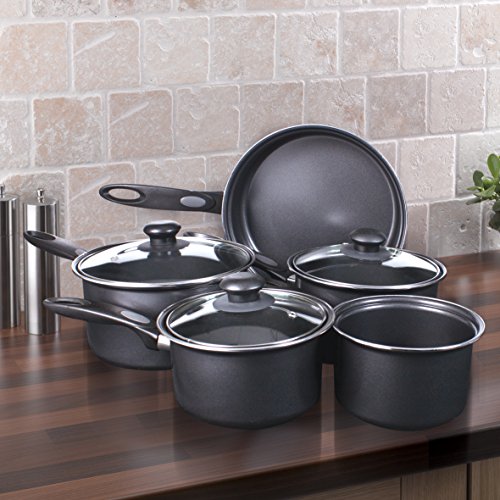 Anika - Set di 5 padelle antiaderenti in Acciaio al Carbonio, Colore Nero