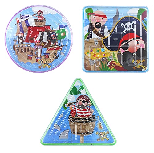 10 mini labirinti a tema pirata assortiti. Ci sono 3 forme assortite. Dimensioni di circa 60 mm.