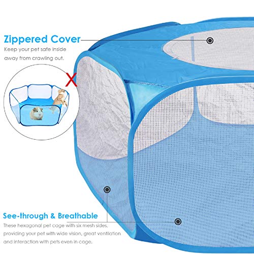 Box per Animali Domestici Pieghevole, Portatile Recinto per Piccoli Animali Domestici, Trasparente Tenda Gabbia per Criceti, Porcellini D'India, Ricci, Conigli, 190T Impermeabile e Resistente, Blu