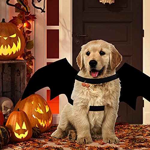 【Stile di halloween】Il costume da ali di pipistrello da compagnia può trasformare il tuo animale domestico in stile pipistrello o vampiro, con le piccole campanelle di zucca carine, aggiungi il favore di Halloween per la tua casa.