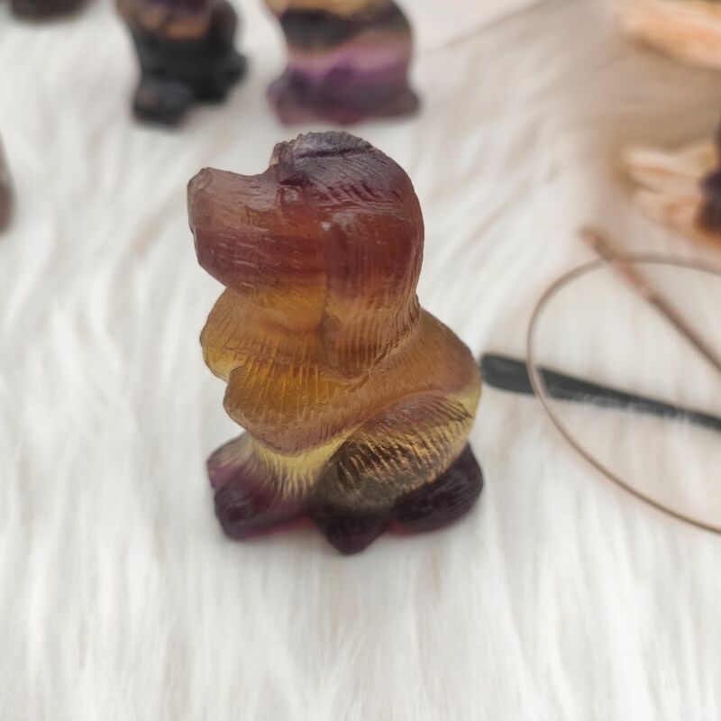 1pcs Colorful fluorite Animali Cane Animale Domestico Bella Room Decor Regalo Creativo Squisito Pietra del Paesaggio Sculture In Legno e Scultura