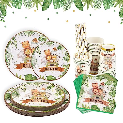 Animali della giunglastoviglie per feste di compleanno Adatto per 20 persone Totale 100 pezzi primo compleanno bimbo Piatti e bicchieri per feste di decorazioni compleanno