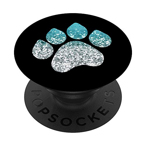 Impronta-Zampa-Cane-Gatto-Effetto-Argento-Azzurro. Animali PopSockets Supporto e Impugnatura per Smartphone e Tablet
