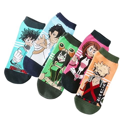 Anime My Hero Academia, set di calzini in cotone, 5 paia di calzini stampati Mha per uomini e donne, caldi calzini corti autunnali e invernali, Tipo 1., Taglia unica