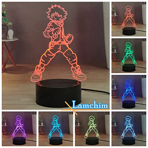 Anime Figure 3D Night Light, Manga Kids Luce notturna a LED, Touch Remote Desk Lamp, Deku Lampada da comodino Decorazione per camera da letto Regalo per bambini (Full Deku)