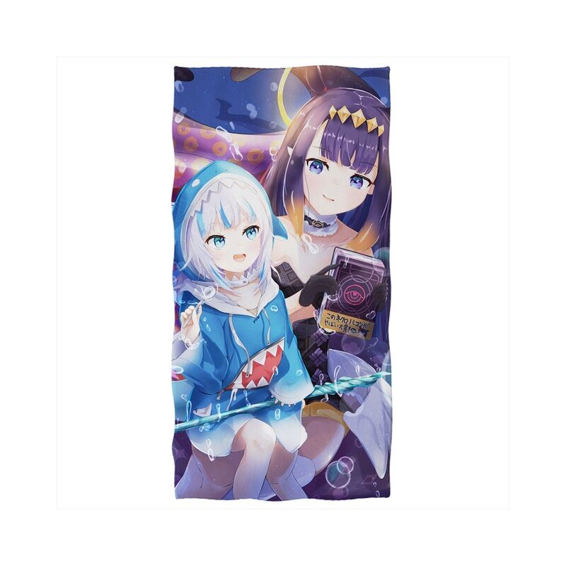 Anime holovive EN Gawr Gura Ninomae Inanis asciugamano da bagno 3D Cartoon microfibra telo doccia da spiaggia per bambini adulti,CO-8,35X75CM