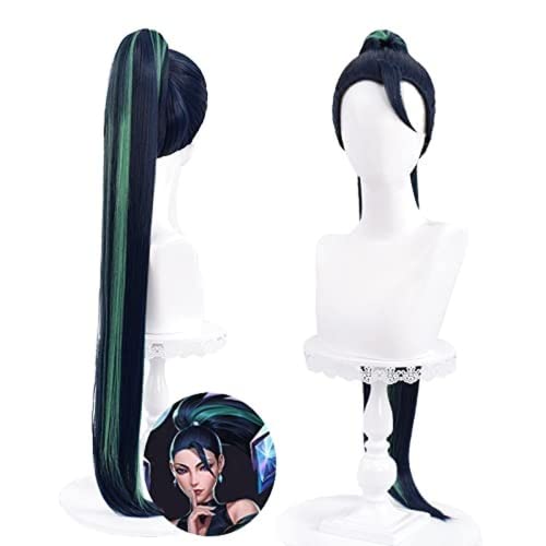 Anime Kaisa Cosplay Parrucca Lunga Rettilineo Nero mix Verde con Coda di Cavallo per Halloween Costume Party Cap gratuito