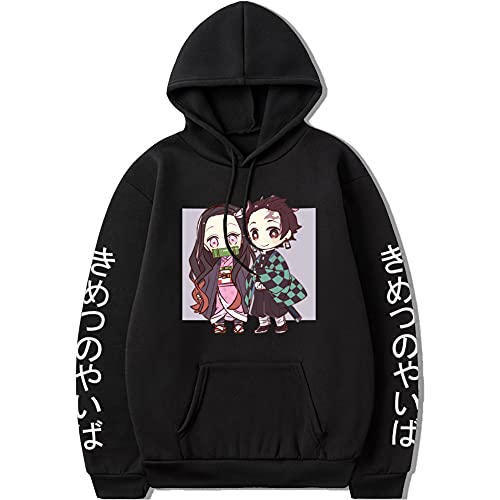 Anime Modello Demone Slayer Felpa Con Cappuccio 3D Anime Cosplay Costume Pullover Felpa Casual Camicia Top Sciolto Coulisse Pullover, Nero, M