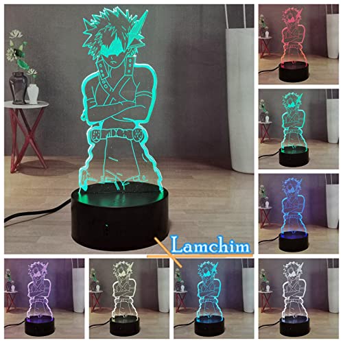 Anime 3D Anime Night Light, Bakugou Katsuki Figure Touch Remote Bedroom Night Lamp 7 Colori Ufficio Atmosfera Luce, Regalo di Compleanno per Bambini, Ragazze 7 colori che cambiano luce notturna