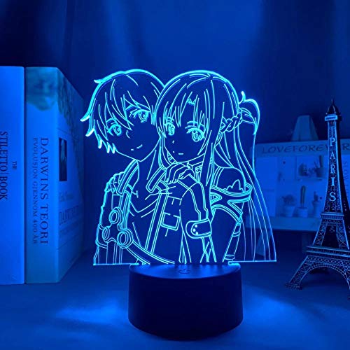 Anime Sword Arte Online Kirito En Asuna lampada Cool 3D Illusione Notte Lampada Home Room Decor Acrilico LED Luce Regalo di Natale Lampade (16 Colori con telecomando)