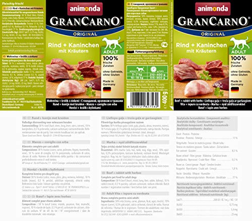 Animonda Gran Carno - Cibo per Cani, coniglio + erbe, 6 x 400 g