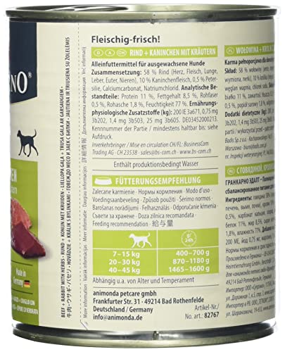 Animonda Gran Carno - Cibo per Cani, coniglio + erbe, 6 x 800 g