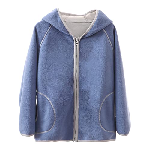 ANIMQUE Bambini Giacca con Cappuccio da Doppio Strato Pile Polare Ragazzi Ragazze con Cerniera Autunno Invernali Caldo Cappotto 1-10 Anni, Blu 100