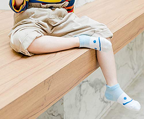 ANIMQUE Calzini Estivi per Bambini 5 paia Genitore-bambino Calze Cotone Sneaker Calzino Bimbo Bimba Quotidiano Base Super Eastico Maglia Traspirante Sottile (16/17 EU) 0-6 Mesi Blu, XS