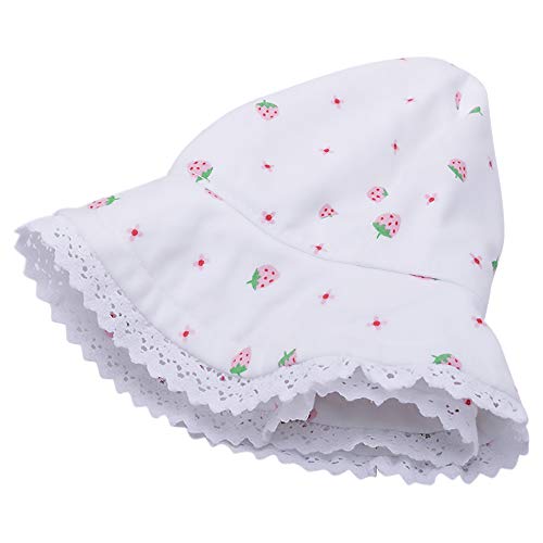 ANIMQUE Cappello da Sole Bambina Cappello a Secchiello Fragola con Tesa Pizzo Cappelli Principessa Cotone Ultramorbido Estivo 0-3 Anni, Bianco 50cm