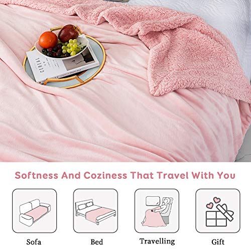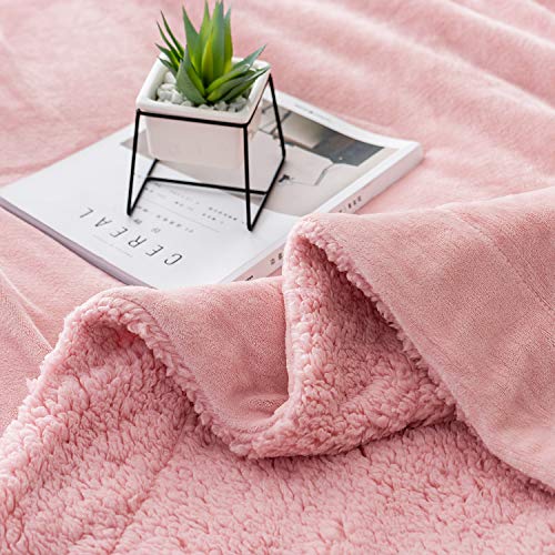 Anjee Coperta in pile Sherpa, coperta reversibile super soffice double face e divano, coperta calda e leggera per interni, rosa per dimensioni singole 230 x 275 cm