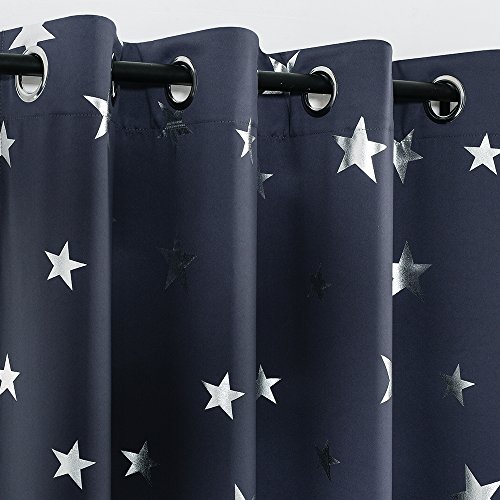 Anjee Occhiello Tende oscuranti Tende a Stelle Termiche Stelle d'Argento 2 Pannelli 52 x 63 Pollici per la Camera dei Bambini, Nursery Crea Spazio a Tema Spazio per i Bambini Blu Navy