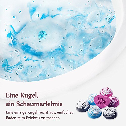 6 Rose, 1 palla a forma di cuore: con rosenfoermigen bomba da bagno, da ispirano Ecuador Rose rosse, suggestivo Rose blu scuro e affascinante Rose nere. Ogni rosa ha al centro una sfera da bagno, a forma di cuore per ricordare una vera Rose