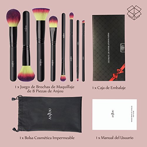 Anjou - Set di 8 pennelli per trucco professionale, con setole morbide, in fibra sintetica
