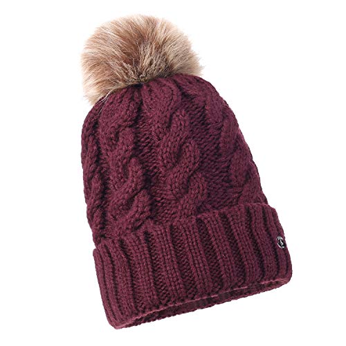 AnJuHoPa Cappello Lavorato a Maglia con Fodera Interna in Pile Polare Bobble in Pelliccia Sintetica Rimovibile per Donne e Ragazze Vin Rouge