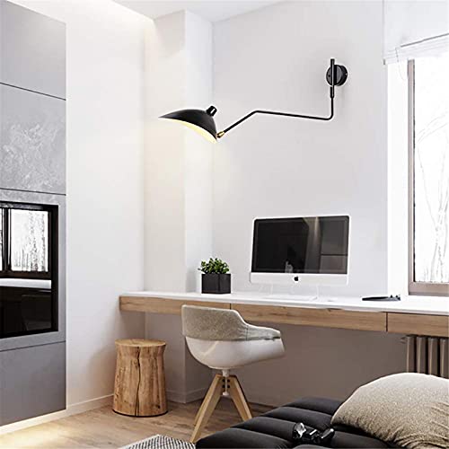 ANKBOY Regolabile Braccio Oscillante Lampada da parete Nero Retro Industria Faretti da Muro Estensibile a Lungo Braccio Parete Illuminazione con Interruttore Spina Interni Lampada Lettura,118 * 40cm