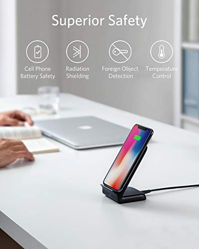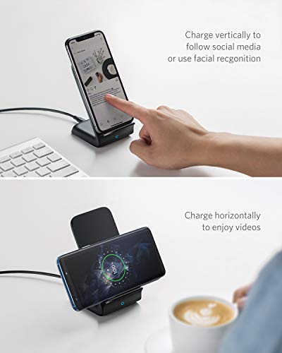 Anker Caricatore Wireless PowerWave 7.5 Stand, Qi-Certificato, Ricarica Veloce per iPhone 11, 11 Pro, 11 Pro Max, XR, Xs, X, 8, Samsung Galaxy S10 S9 S8, Note 10 Note 9 e altri (nessun adattatore CA)