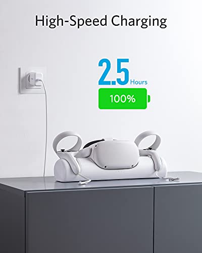Anker per Oculus Quest 2 stazione di ricare. certificata Oculus con supporto di ricare., auricolari e supporto per controller con 2 batterie ricare., con caricabatterie USB-C e cavo di ricare.