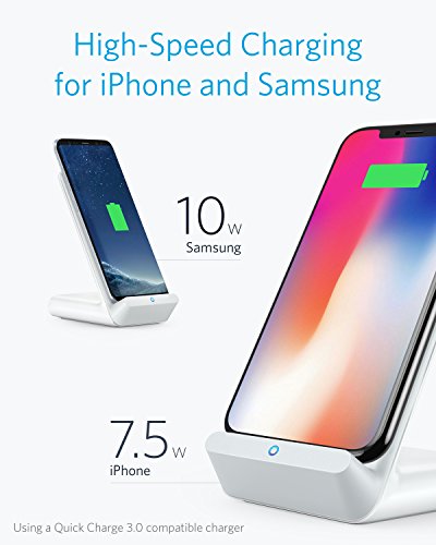 Anker Power Wave 7.5 ricarica taender Wireless Charger, Potente Wireless Ricarica taender con 7,5 W per iPhone X, iPhone 8/8 Plus e con 10 W per Samsung S9/S8/S8 +/S7, Quick Charge 3.0 AC con adattatore incluso
