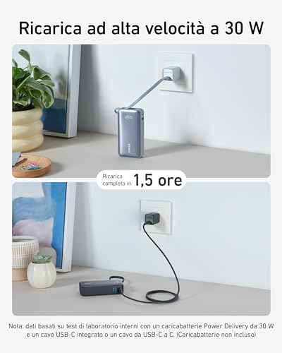 Contenuto della confezione: Power Bank Anker Nano (30 W, cavo USB-C integrato), istruzioni per l'uso (lingua italiana non garantita).