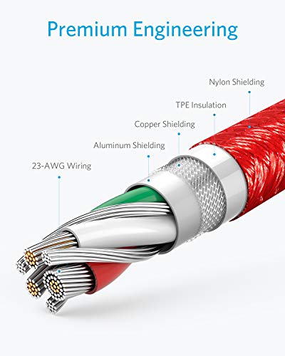 Anker Cavo USB Powerline+ da USB-C a USB-A [10ft], Cavo di Ricarica Rapida in Nylon a Doppia intrecciatura, per Samsung Galaxy S10/S9/S9+/S8/S8+/Note 8, LG V20/G5/G6 e Altro (Rosso)