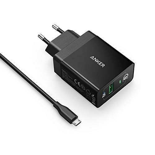 Anker PowerPort+1 - Caricatore USB da 18 W con Quick Charge 3.0 e Power IQ + Cavo Micro USB da 0,9 m per Samsung Galaxy S8 / S7 / S6 / Edge/Plus/Note/LG/Nexus/HTC, Colore: Nero