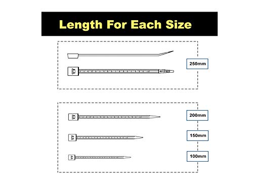 Più lunghezze: con dimensioni di 150 mm, 200 mm, 250 mm assortite in una confezione (4 x 100 = 400 pz.), avrete fascette per soddisfare una vasta gamma di esigenze personali e professionali.