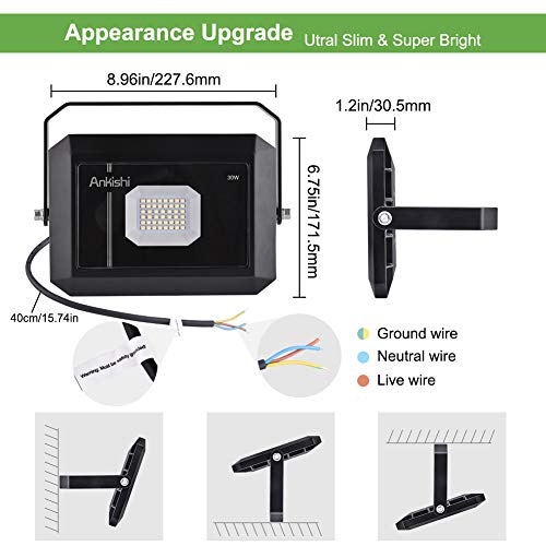 Ankishi Faretto LED da Esterno, Ultra sottile IP65 Resistente all'acqua Proiettori per Esterni, Luce Di Sicurezza 10000LM, 6000K Bianco Freddo, Consumo Basso Super Luminoso per Giardino, Magazzino (66)