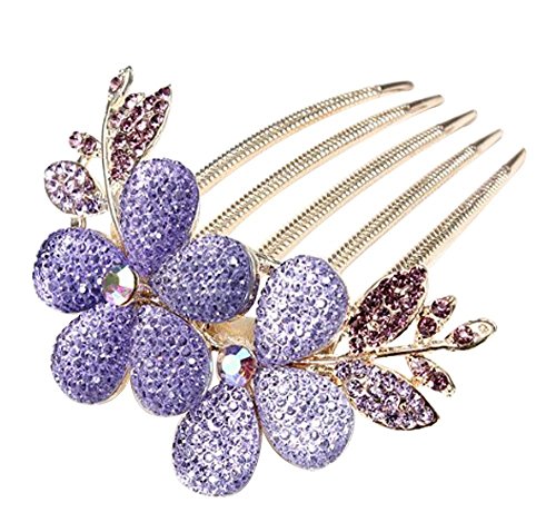 ANKKO Donne Elegante Affascinante Strass Fiore Modello fermacapelli a Pettine Forcina (Purpureo)